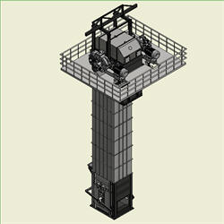 由于水泥企業(yè)規(guī)模的不斷擴(kuò)大和節(jié)能減排的要求,在國(guó)內(nèi)外采用輥壓機(jī)用于生料終粉磨和水泥聯(lián)合粉磨也越來(lái)越多,其單臺(tái)的能力也不斷擴(kuò)大,使得與之相配套的輸送設(shè)備-單臺(tái)提升機(jī)的能力也在提高。由于此處的物料是塊狀的且磨琢性很大,因此只有板鏈提升機(jī)能夠適用。但由于輥壓機(jī)出輥物料不穩(wěn)定及磨琢性大等特性及生產(chǎn)工藝問(wèn)題,經(jīng)常造成提升機(jī)堵料、漏料、設(shè)備振動(dòng)、電機(jī)頻繁跳停、物料回料量大等現(xiàn)象,嚴(yán)重的影響了整個(gè)系統(tǒng)的運(yùn)轉(zhuǎn)率。我公司集多年板鏈提升機(jī)設(shè)計(jì)和制造經(jīng)驗(yàn),開(kāi)發(fā)出了適用于此工藝系統(tǒng)的大輸送量的大型板鏈斗式提升機(jī),使得整個(gè)工藝系統(tǒng)不因板鏈斗式提升機(jī)的故障而影響整個(gè)系統(tǒng)的運(yùn)轉(zhuǎn)率。